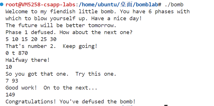 按照阶段依次输入上面分析的答案,运行结果截图如下: