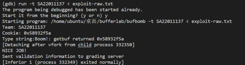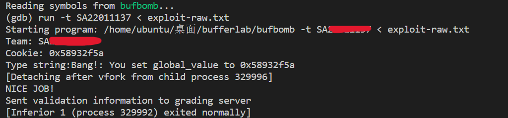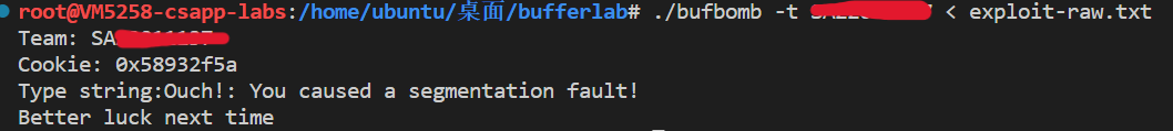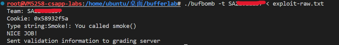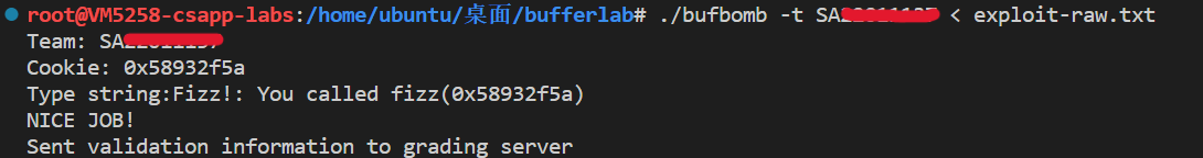 1 ./bufbomb -t SA18225155 < exploit-raw .txt